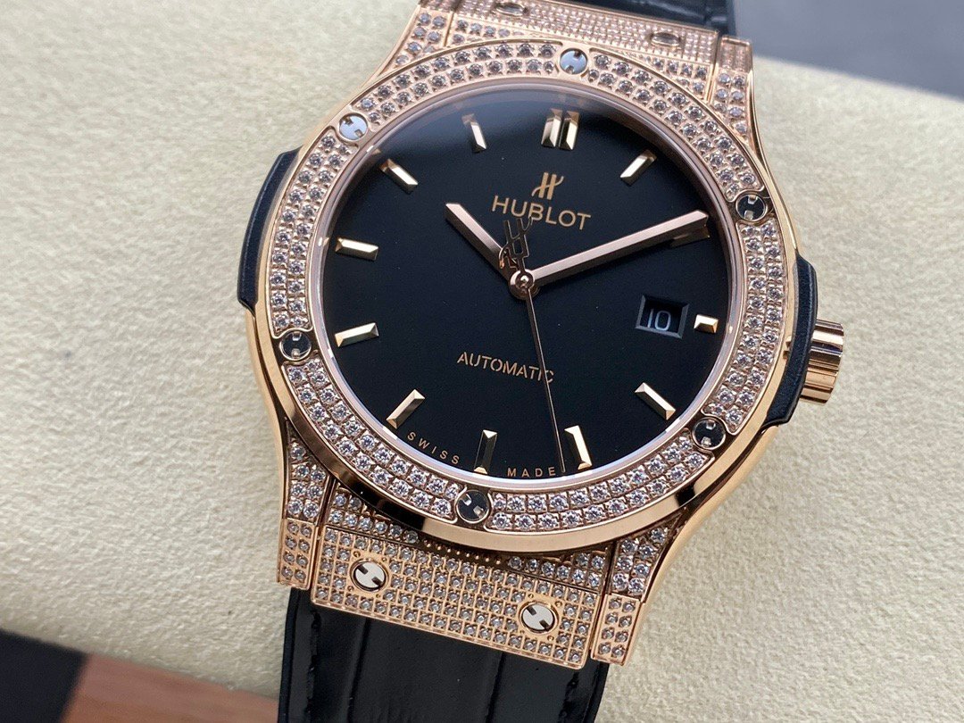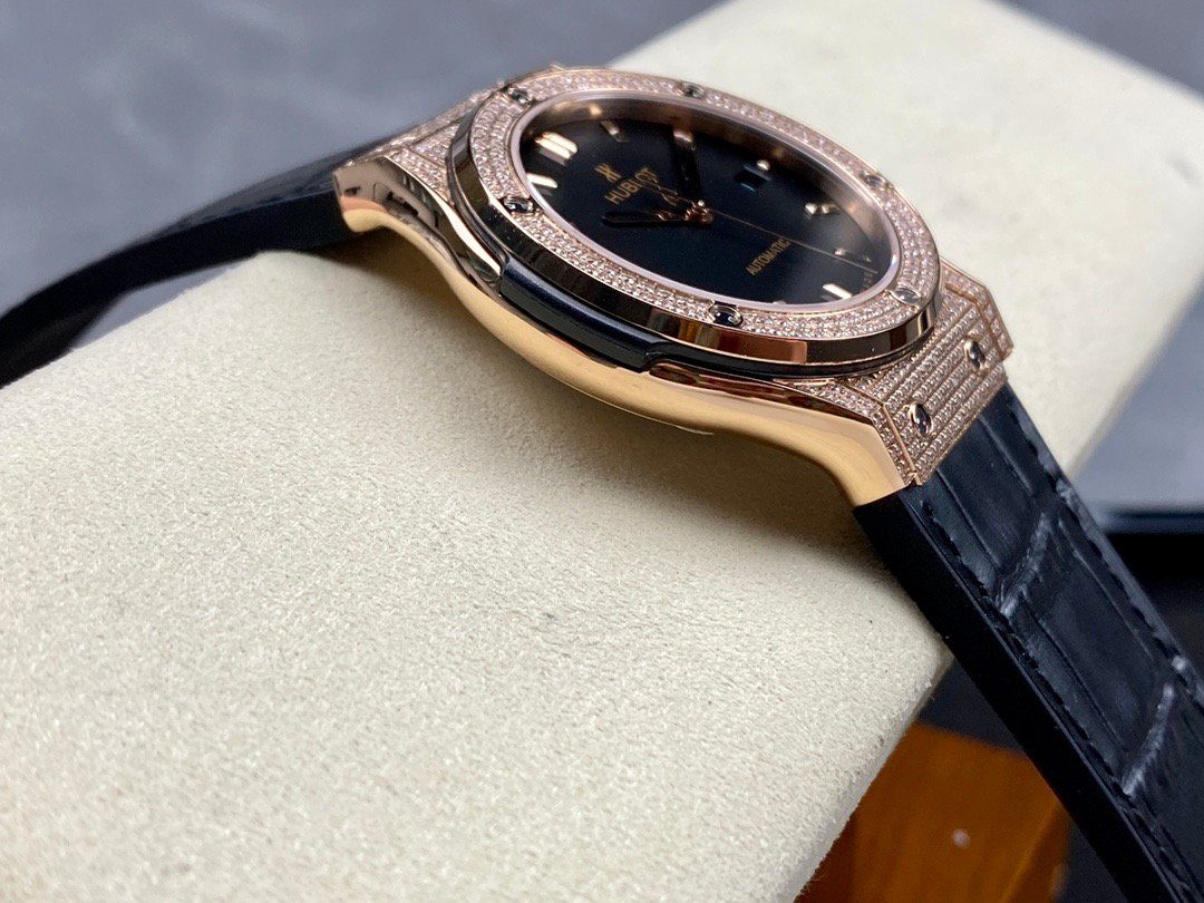 Case:Size: 40 mmMaterial: Rose gold with polished finishCrystal: Sapphire with anti-reflective treatmentWater Resistance: 50 meters (5 ATM)Movement:Caliber: HUB1100Self-winding movementPower Reserve: